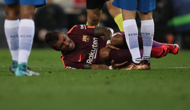 犯规导致保利尼奥受伤,伤势还不轻,随着比赛进行变得难以坚持。下场后暴力鸟从队医那接过冰桶,用冰袋给右脚外侧受伤部位降温处理,避免伤情加重,他将在赛后1天接受检查,确诊伤情。这是巴萨又一名受伤的重要球员,库蒂尼奥、乌姆蒂蒂、帕科-阿尔卡塞尔、伊涅斯塔与马斯切拉诺都有伤,旧伤复发的登贝莱则要休战1月。