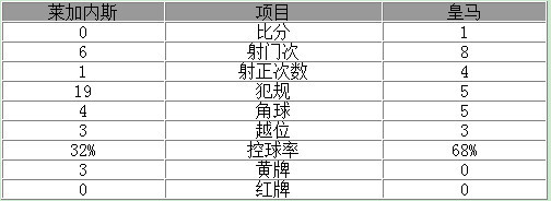 皇马全场控球率达68%,不过射门只有8次,射正4次打入1球。各项数据白衣军并不占优势,不过犯规少也避免了吃牌。
