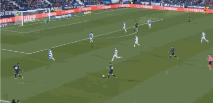 第89分钟,阿森西奥分球,伊斯科分边,泰奥-埃尔南德斯左翼传中,阿森西奥前点大力抽射打入球门近角,皇马1-0。