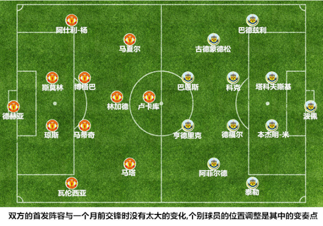 在双方一个月前的那次交锋中,穆里尼奥在首发阵容中排出了伊布&卢卡库双中锋组合,他原本希望依靠伊布的轴心作用来吸引防守为卢卡库减压,但久疏战阵的瑞典中锋在实战中只能完成简单的回撤策应任务,身体素质的下降和脚下频率的变慢限制了他在进攻核心区的用球。穆里尼奥此役在排兵布阵时显然是吸取了老特拉福德之战时的经验教训,他没有因为伯恩利的黑马特质和防守专长而自乱阵脚,除了用解禁复出的阿什利-杨取代卢克-肖以外,狂人基本保留了三天前大胜斯托克城时的原班人马。