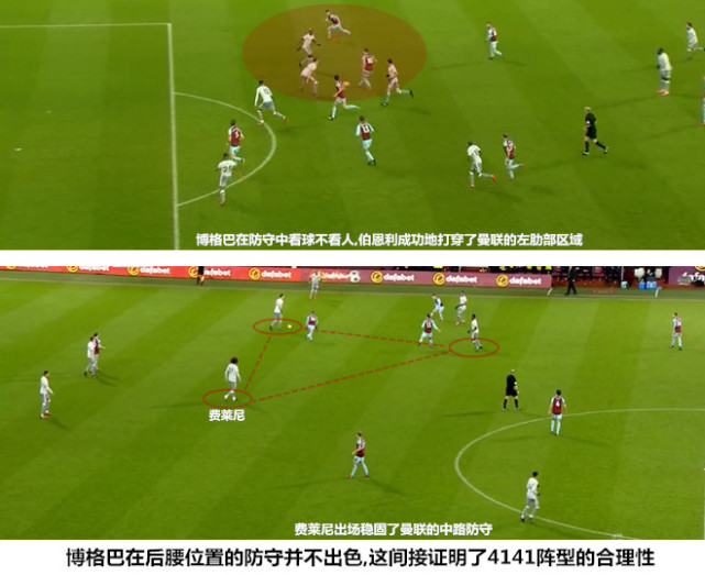 当然,博格巴的前移在全面激活进攻的同时也在防守端埋下了隐患。在上半场双方拼刺刀的阶段,注重边路进攻的伯恩利多次从中路打开缺口,博格巴看球不看人的防守特点导致其频繁遭受对手的攻击。穆里尼奥早早地换上费莱尼加强防守,一方面是因为他发现了球队在后腰位置的隐患,此前三次不胜伯恩利的经历让他不敢小觑对手,另一方面就是在姆希塔良即将离队的情况下,红魔阵中除拉什福德以外并没有适合在客场领先情况下出场的替补球员。