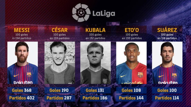 梅开二度后,苏神西甲生涯总进球已达100球(注:巴萨官网与OPTA数据,西媒统计99球,有1球归属存争议),在巴萨队史上,乌拉圭人是第5位百球先生,落后梅西的368球,塞萨尔的191球,库巴拉的131球与埃托奥的108球。苏神114战100球的效率十分惊人,本赛季若能维持如此进球率,他有望超越猎豹。西甲历史上进球比苏神更多的乌拉圭人,只有128球的弗兰。