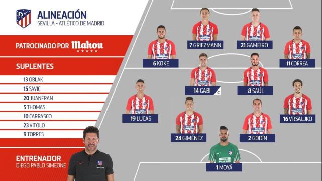 腾讯体育讯 北京时间1月24日凌晨4时30分,2017-18赛季西班牙国王杯1/4决赛次回合,马竞做客挑战塞维利亚,双方首发阵容已经公布。