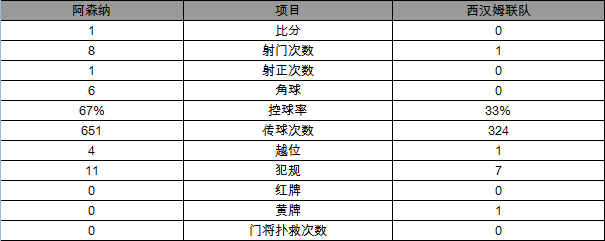 阿森纳VS西汉姆首发:吉鲁领衔 黑贝+小老虎
