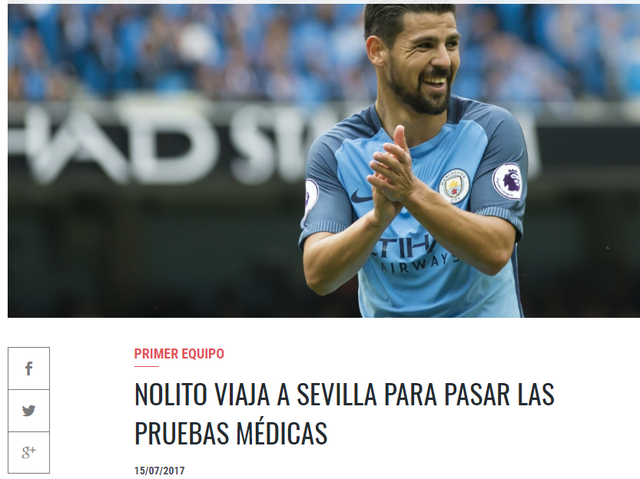 塞维利亚宣布诺利托回归 通过体检后将签约3年
